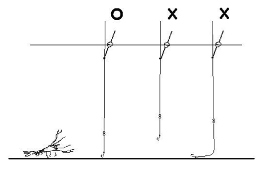 測量水深是一個重要的環節,初釣者最容易忽視。前面說過,釣蝦是浮釣。釣鉤是懸浮在水中,靠近水底一公分以內為宜。為什麼要這樣呢?因為蝦雖然會游泳,大多數時間卻是在水底爬行,所以只能在水底覓食,當誘餌飄過眼前時候,蝦就會攫取。釣餌是懸空的,稍微牽動,浮漂就有反應。如果釣線太長,釣鉤拖地,即使蝦來吃餌,浮漂也沒有動靜,釣者無法察覺。反之,如果釣線太短,釣鉤高高懸於水半腰,蝦即使在底下路過也不會抬頭吃食。