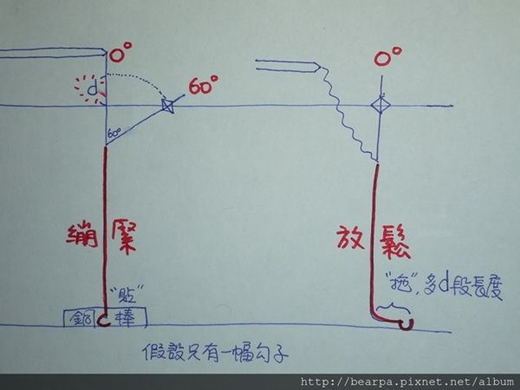 並且把浮標調整至跟線的夾角約莫45度,