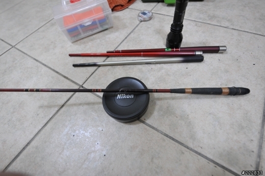 古人云,欲善其事,必先利其器,器就是釣具。儘管蝦場提供釣具,有經驗的釣手,還是喜歡用自己的釣具。好的釣蝦竿一般是碳素纖維材質,重量才十幾克,拿在手裡簡直輕若鴻毛,而彈性與韌性卻毫不含糊,用起來自然得心應手。沒有自己的釣竿,退而求其次,可以帶上自己的蝦鉤。蝦跟魚不同,蝦皮厚且韌,再加上光滑。所以蝦鉤一點要足夠犀利,才能確保刺穿蝦的皮甲。蝦場提供的鉤經過多次使用,往往已經鈍化。所以,自備幾個蝦鉤是必須的。蝦鉤很便宜,在漁具店一塊多新幣可以買十隻。蝦鉤有大有小,大小鉤的選擇跟釣者的手法有直接關係。有的釣手喜歡大力提鉤,俗稱打蝦,這樣選擇大鉤能增加命中率。有的釣手喜歡坐等蝦把鉤吃下,那麼小鉤就更適合。如果連續幾次出現跑蝦現象,就應該檢查鉤尖是否仍舊鋒利,方法是用鉤尖輕輕劃過指甲,如果有滯澀感,表示依然鋒利,如果感覺順滑,則需要更換釣鉤。竿鉤齊備,還差浮漂。浮漂是你的耳目,同樣馬虎不得。浮漂有很多種,建議初釣者選用外形纖細,色彩鮮明的,這樣的浮漂靈敏度高,又便於觀察。如果是夜晚,最好選用白色或夜光漂。